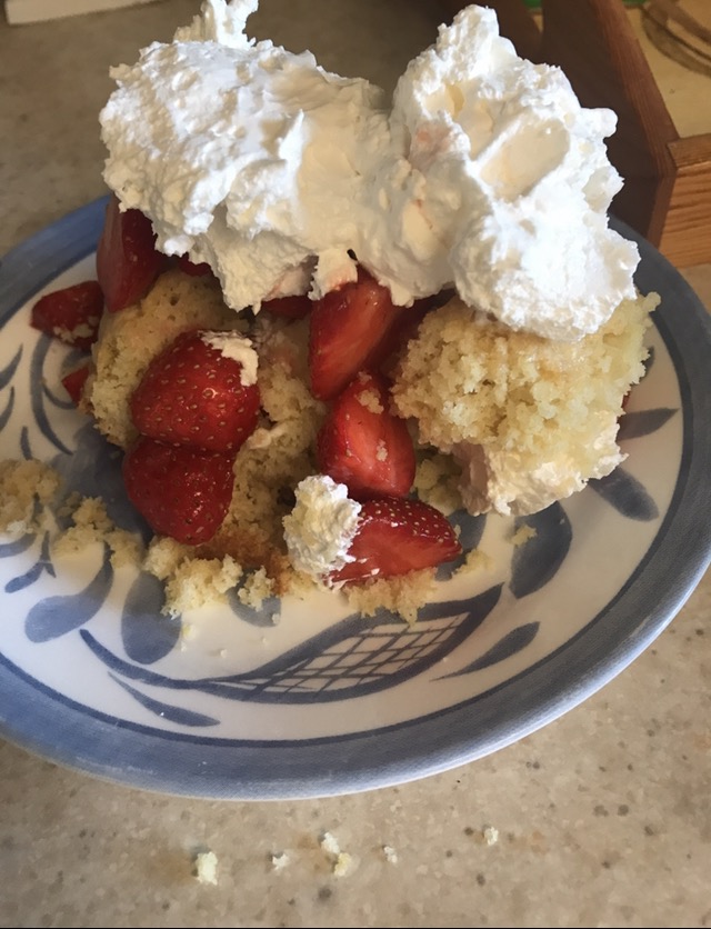 About a week ago, my daughter sent me a pic and said, “Look what we did”. Strawberry shortcake! They not only made it, they picked the berries! It looked so scrumptious!