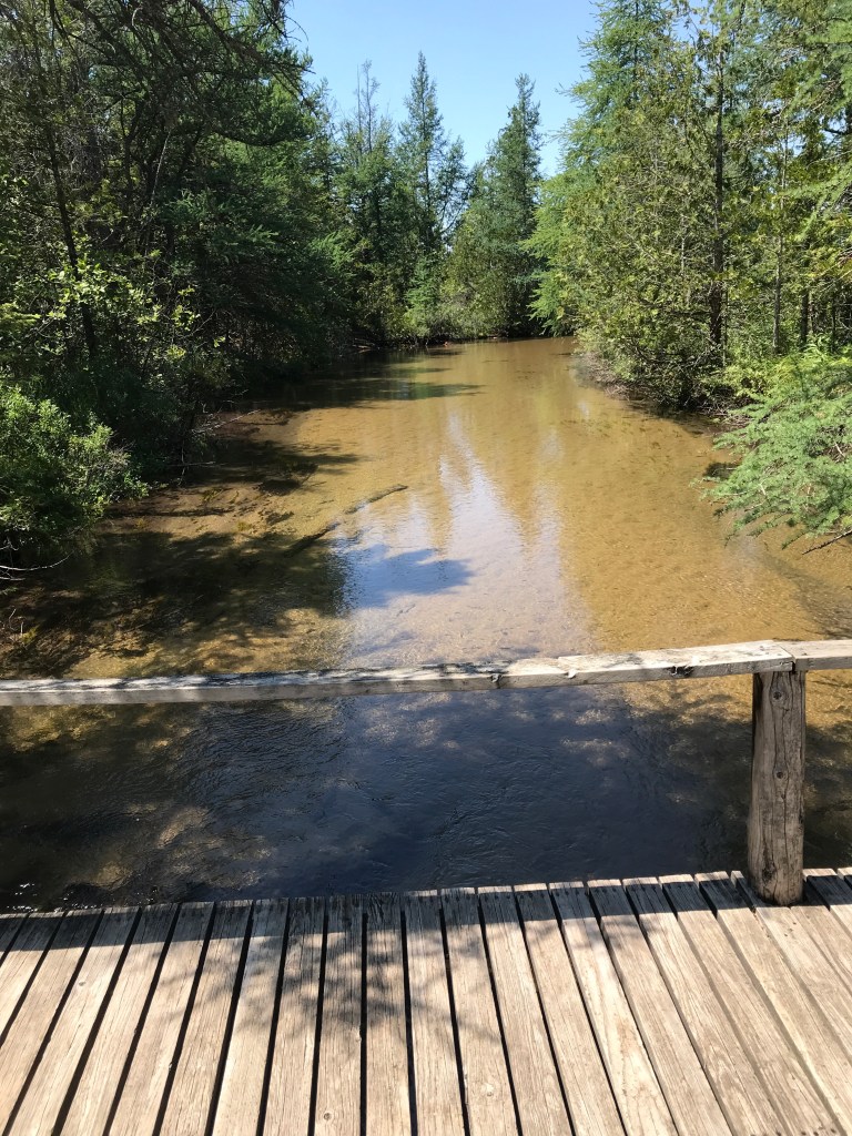 This week, there were only 3 of us. We had lunch at “Toonie’s” in Bellaire, went to an art gallery where one of the gals from Bible study displays her artwork. She’s a magnificent artist. The gallery was called “Mr. Pin”. From there, we went to Grass River Natural area, then back to “Ruthie’s” in Bellaire for an ice cream cone! What a nice day!